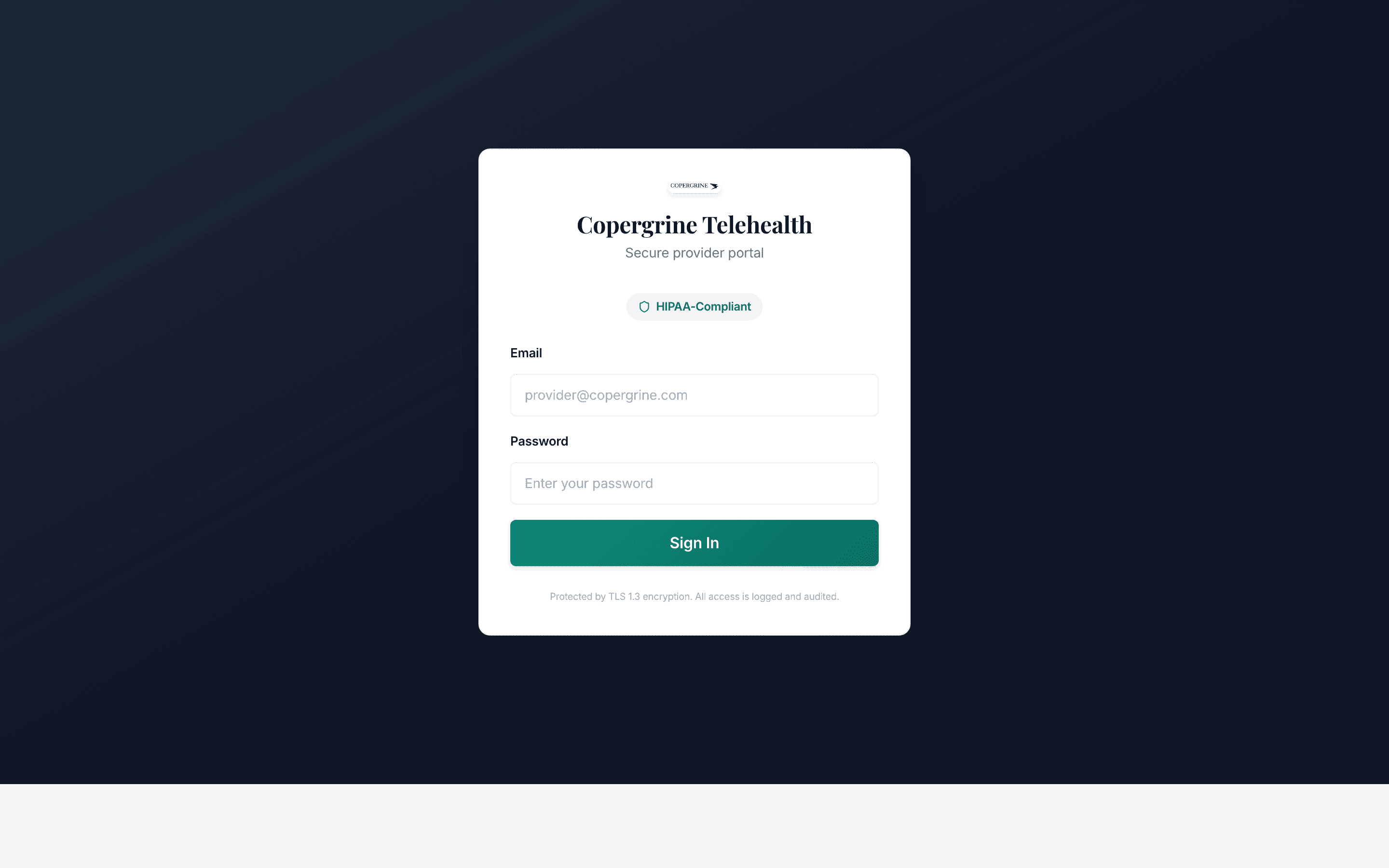 Copergrine Telehealth is two things in one platform: a secure way for Houston patients to see a clinician from home, and a complete EMR our providers use to deliver care end to end. Patients book the same way they book an in-person visit. Providers use a single workspace for charting, prescribing, billing, and follow-up.